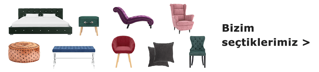 Kadife bir yatak alarak yatak odanıza sofistike bir görünüm katabilirsiniz. Zarif bir yatak odası düzeni için detaylı bir tasarıma yönelebilir ya da nötr renklerdeki basit çizgilerle odanızı genişletebilirsiniz. Öğleden sonraları biraz dinlenmek ve huzurlu bir köşe oluşturmak için yüksek sırtlıklı kadife bir koltuk edinmenizi de ayrıca tavsiye ediyoruz. Kadife yemek sandalyeleri kullanarak yemek odanıza ya da mutfağınıza klas bir hava katabilirsiniz. Burada ister pelüş kadife ile modern bir tasarıma isterseniz de koyu kadife renklere sahip Viktoryan bir tasarıma yönelebilirsiniz.